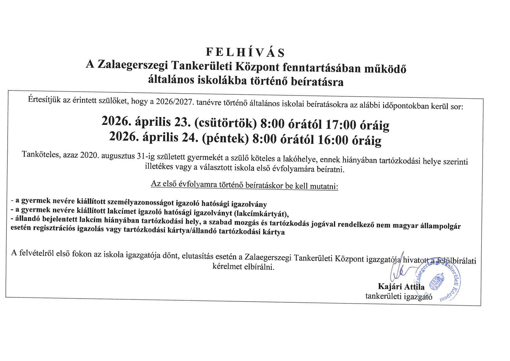 Beiratkozás az általános iskolába 2026