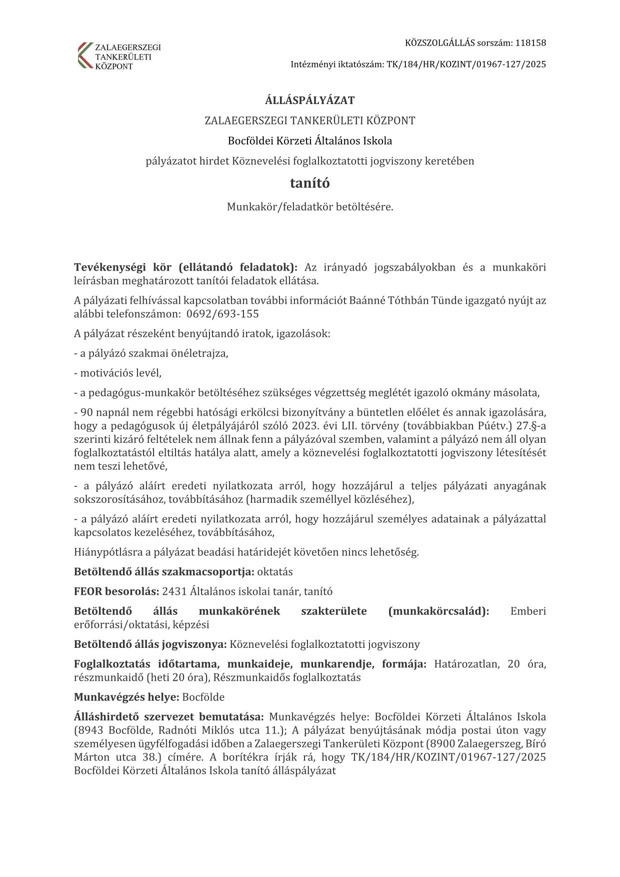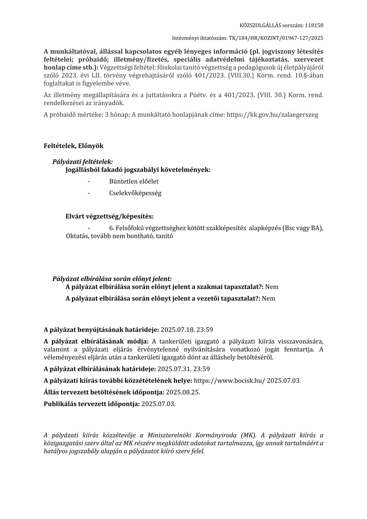 Jelenleg álláslehetőség.